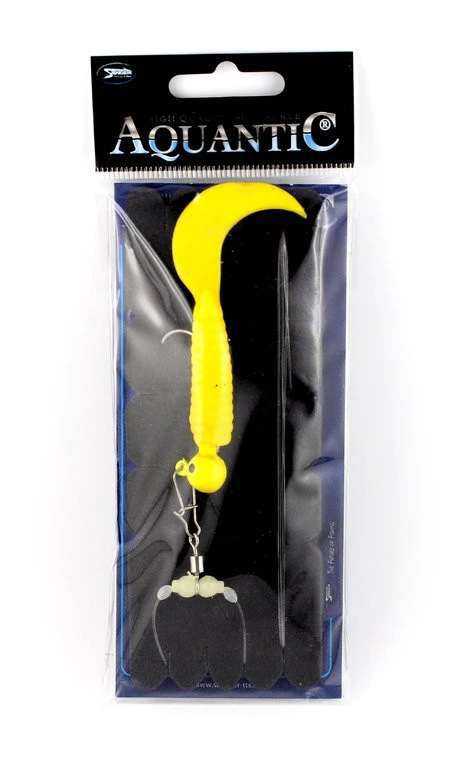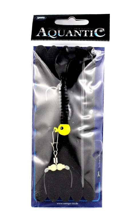 Dieses Single-Twister Vorfach gibt es in Schwarz oder Gelb. Der Einzeltwister ist an einem Jigkopf der Größe 2/0 mit 9g befestigt. Die Schnur hat einen Durchmesser von 0,60mm.