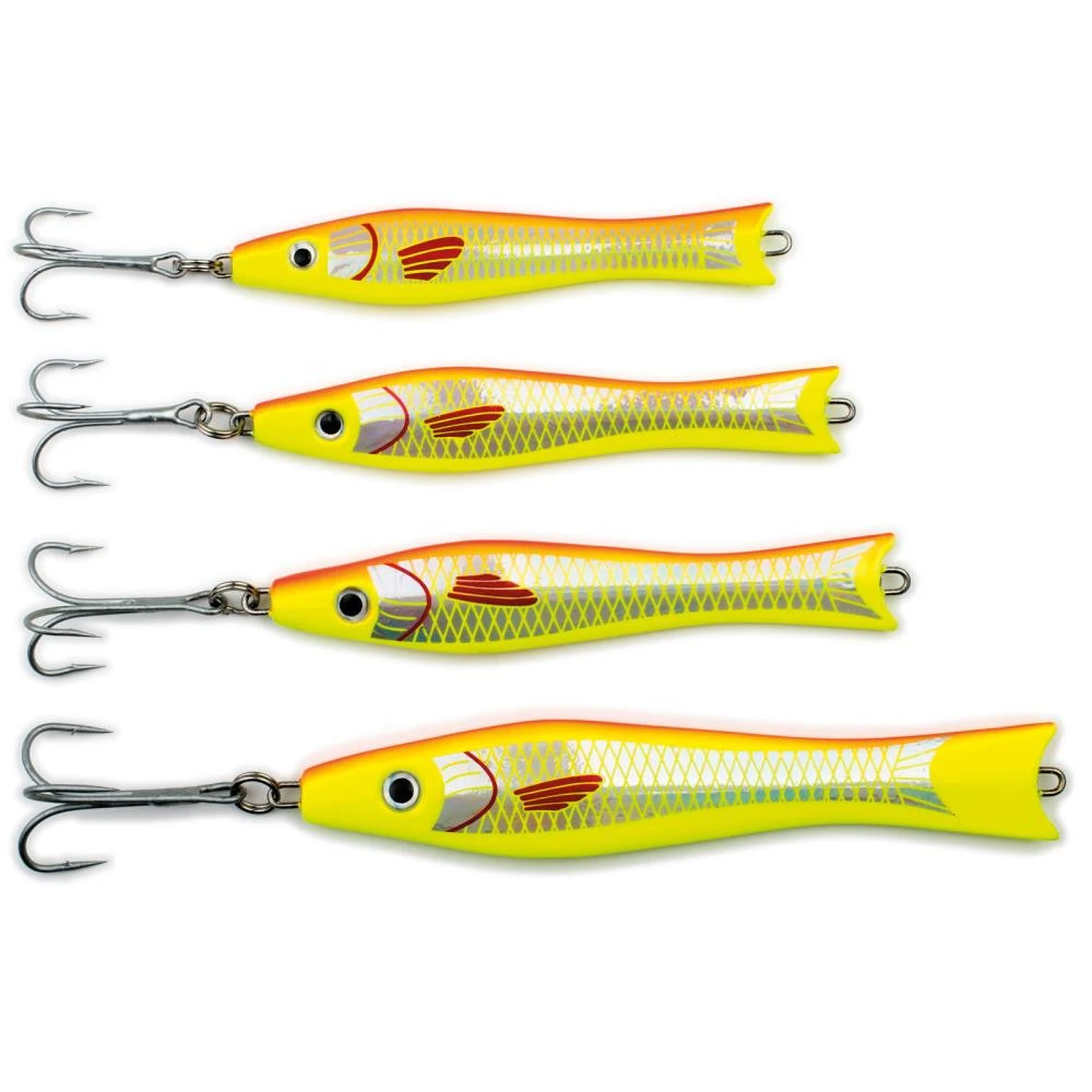 Dies ist ein Top Standard-Pilker, der in keiner Pilkerbox fehlen sollte. Seine Farbe ist Fluo-Gelb/Orange mit einem Suppenmuster. Verfügbar ist der Pilker in Gewichten von 60g – 200g, alsoo ideal für das Angeln in der Ostsee bzw. das leichte Pilkangeln in Norwegen.