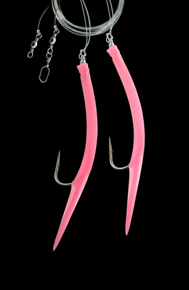 Dieses komplett montierte Meeresvorfach besticht mit stark leuchtenden (luminous) Gummi-Makk. Es hat 2 Seitenarme und eine Länge von 100 cm. Es stehen drei Größen von 8/0 bis 12/0 und drei Farben zur Verfügung.