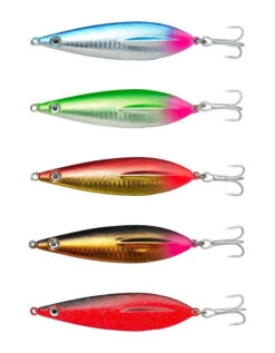 Diesen Pilker mit seiner 12° Gehrung gibt es in vier Farben und Gewichten von 200g, 300g, 400g und 500g. Es gibt zwei Farben (Silber-Rot / Gelb-Rot) die darüberhinaus in 600g, 700g, 800g und 1000g verfügbar sind. Der Anschnitt von 12° sorgt für eine optimale Bewegung. Ausgestattet ist dieser Pilker mit einem hochwertigen Drilling, der nochmals am Schaft mit einem Leuchtschlauch überzogen wurde. Dies erhöht die Fängigkeit nochmals. Der Pilker ist bleifrei.