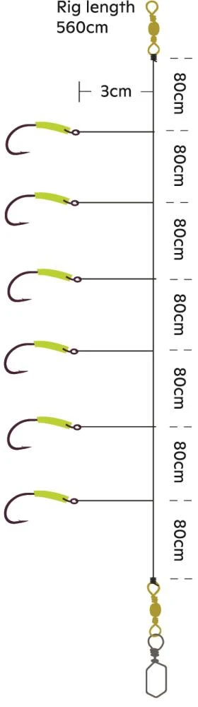 Diese Serie von Vorfächern ist speziell für das Angeln in den Fjorden oder auf offener See in Norwegen konzipiert. Als Zentrum des nordeuropäischen Hochseeangelns ist Norwegen das beliebteste Reiseziel für ambitionierte Angler. Unsere Vorfächer wurden im Laufe der Jahre entwickelt und optimal abgestimmt, und wir sind sehr stolz darauf, diese maßgeschneiderte Serie von Vorfach-Systemen anbieten zu können, die all Ihre Bedürfnisse abdeckt. Der Rotbarsch ist einer der schmackhaftesten und begehrten Fischarten, den viele Angler gern fangen möchten. Dieser wird oft in großen Tiefen bei niedrigen Lichtverhältnissen gefangen. Dieses Vorfach ist genau darauf ausgelegt und verfügt bei einer Länge von 560cm über sechs Haken, die mit intensiv leuchtenden Schlauchstücken bestückt sind.