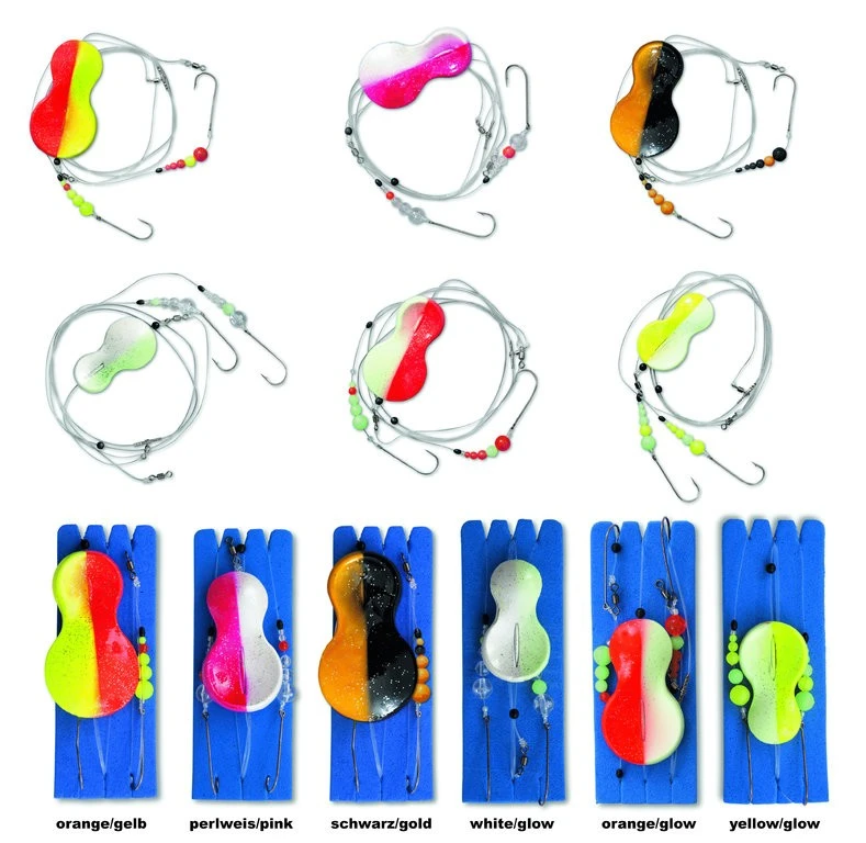Dieses spezielle Plattfisch-Vorfach ist mit dem bekannten „Inline Teaser“ (Buttlöffel) kombiniert. Somit erkennen Sie auch jeden noch so feinen Biss der Fische. Die Länge des Vorfachs beträgt 90cm. Es beinhaltet zwei Haken der Größe 1, welche an einer 0,40mm starken Vorfachschnur befestigt sind. Die Hauptschnur hat einen Durchmesser von 0,70mm.