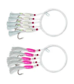 Dieses Rotbarsch-Vorfach besteht aus 5 Einzelhaken Systemen mit je einem Einzelhaken der Größe 7/0 für eine Garnele oder Fischfetzen, sowie einem Leuchtschlauch an jedem Haken. Die Hauptschnur hat ein Stärke von 1,00mm mit einer Tragkraft von 50Kg. Die Gesamtlänge beträgt 500cm. Das Vorfach ist ideal für das Bootsangeln auf Rotbarsch. Die Lieferung erfolgt auf einem runden Aufwickler.